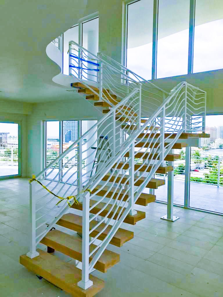 Beautifully Engineered and Meticulously Fabricated Engineered and manufactured in a way that it is strong, up to code but still visually appealing. Being at the top of a high-rise, the mono-rail stairs was prefabricated with an interlocking system to be able to transport easily. From customers idea to shop drawing to fabrication drawing to installation, all steps were taken into consideration.